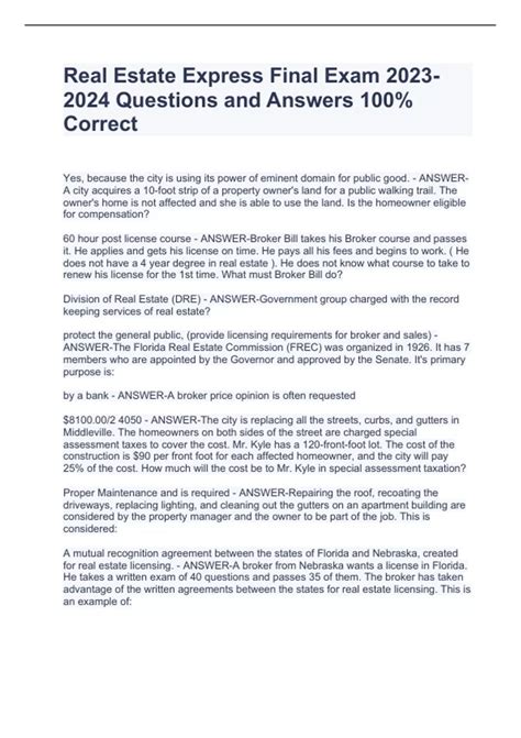 Download online REAL ESTATE EXPRESS FINAL EXAM ANSWERS WA PDF BookBoon